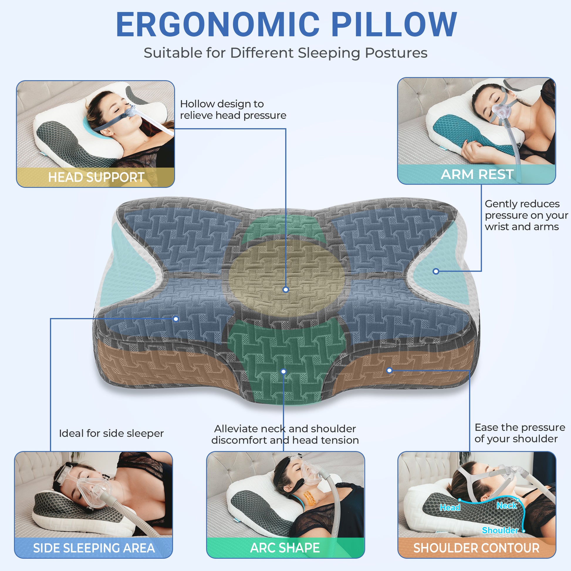 Yes. The unique contour pillow is designed to accommodate CPAP masks and tubes, which helps to reduce air leaks and eliminate mask pressure on the face. Greatly improve comfort for CPAP sleepers.