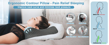 Neck contour design fits perfectly to the contours of neck and offers excellent support to your neck and shouler, which help to maintain spinal alignment, educe your neck, head and shoulder pain during sleeping. The central cavity aims to hold the head, effectively relieving muscle tension and promoting blood circulation. With dynamic sleep areas, our contour pillows improve cervical strain, insomnia, headache, snoring.